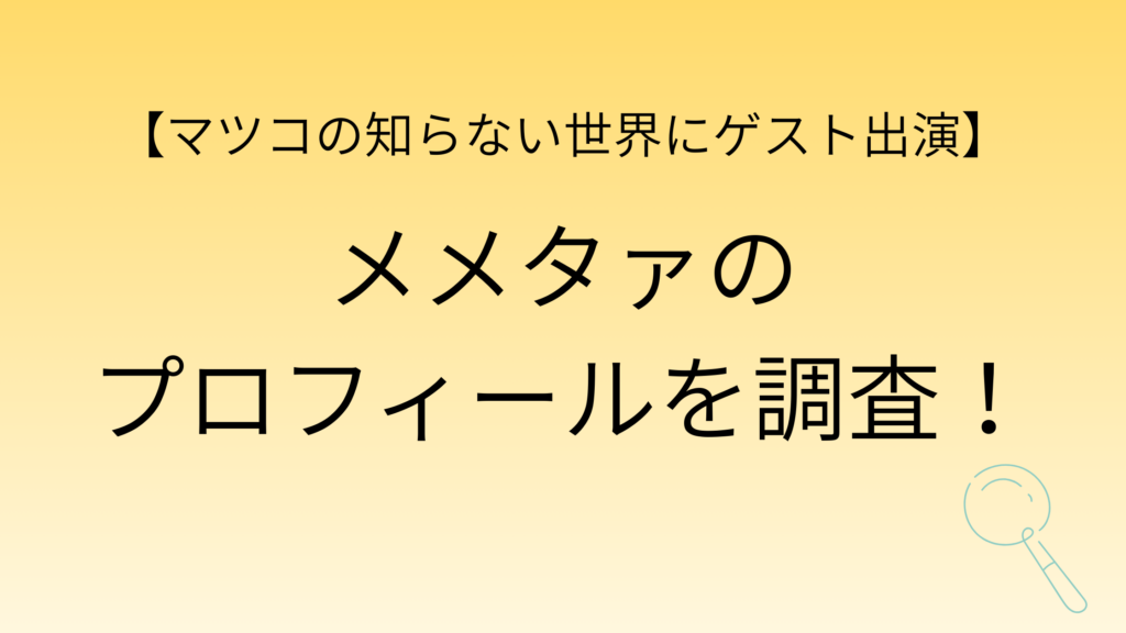 【マツコの知らない世界】メメタァのプロフィールを大調査!【ピザ特集でゲスト出演】