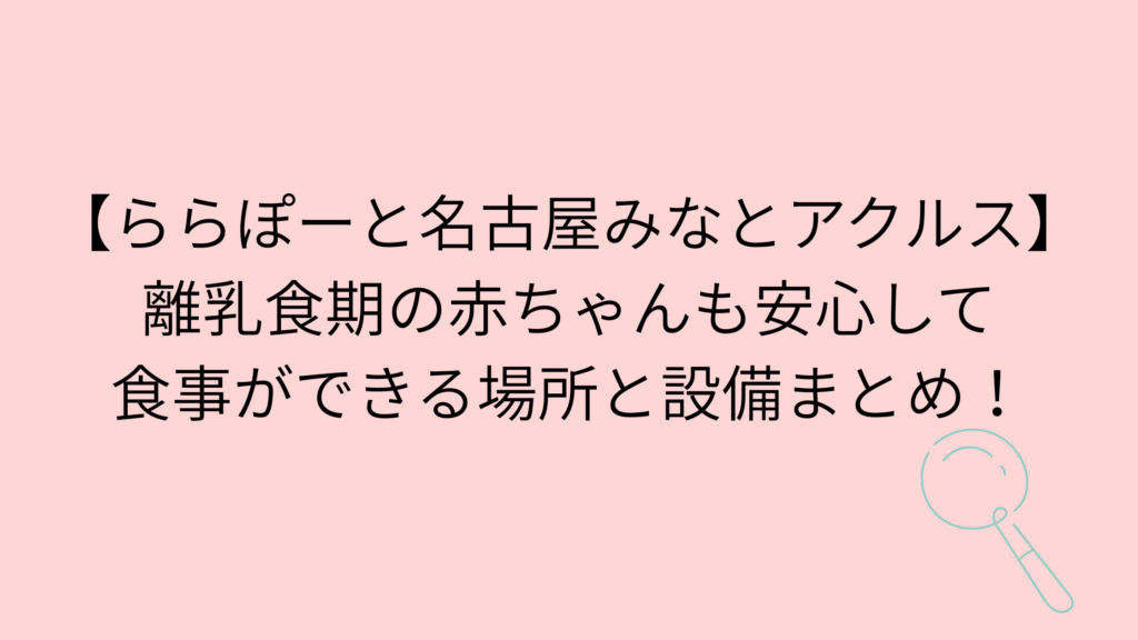 離乳食期の赤ちゃんはまだ食べられるものが少ないので、外出時は離乳食を持参する方も多いのではないでしょうか。 ららぽーと名古屋みなとアクルスには離乳食期の赤ちゃんが食事ができる設備がしっかり揃っています。 今回はららぽーと名古屋みなとアクル...