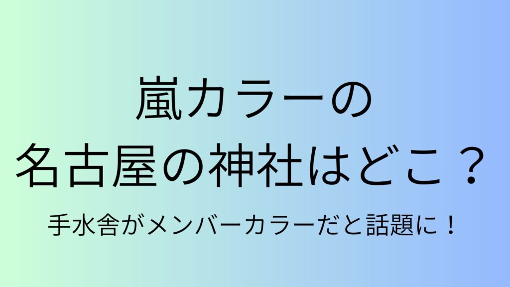 2026年4月6日から8日までの3日間、嵐のラストツアー名古屋公演がバンテリンドームで行われました。 多くの方が名古屋に訪れ、街全体が嵐一色となる中、ある神社の手水舎が嵐カラーに染まっていると話題になっています。 そこで本記事では、嵐のメンバーカ... -