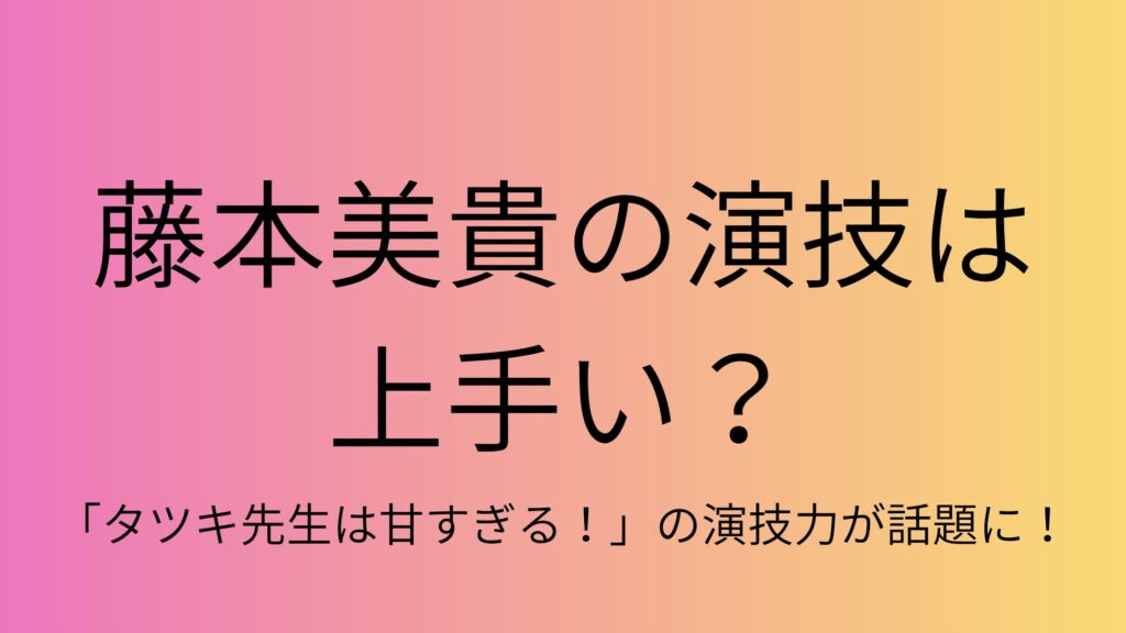 藤本美貴の演技が上手い?「タツキ先生は甘すぎる!」の演技力が話題に!