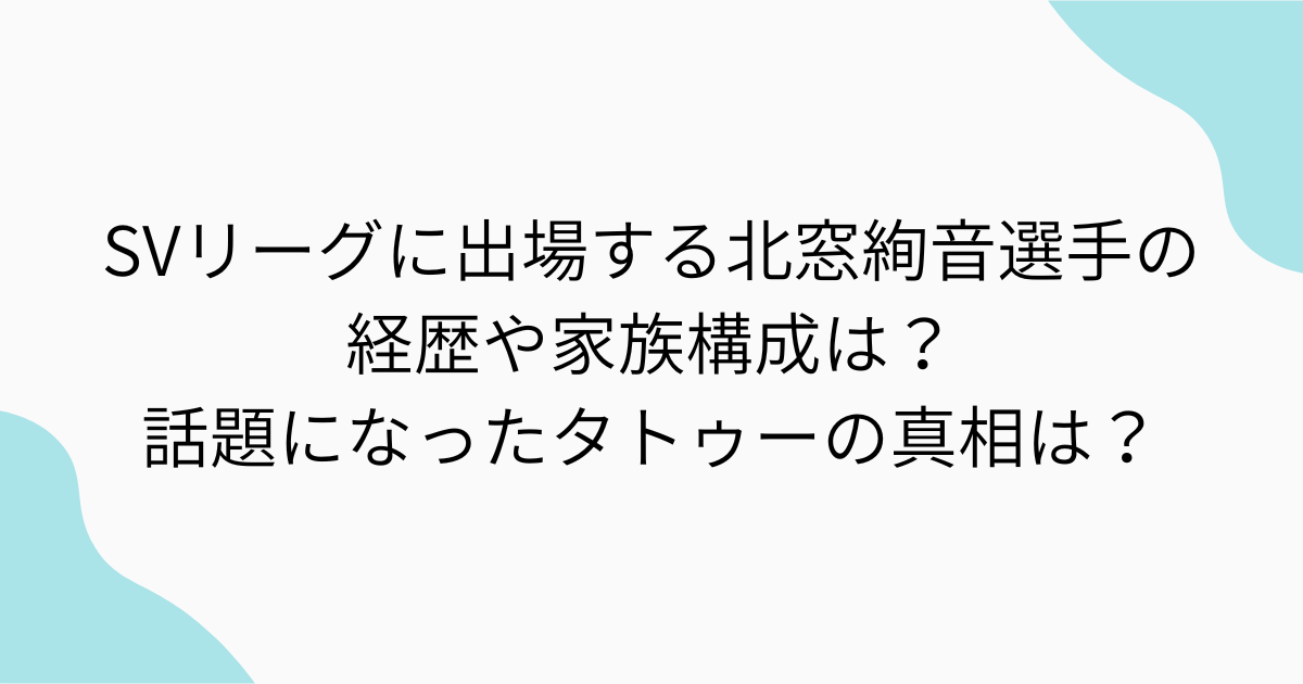 今回はSAGA久光スプリングスに所属する北窓絢音選手の経歴や「タトゥー」の真相についてまとめてみました。