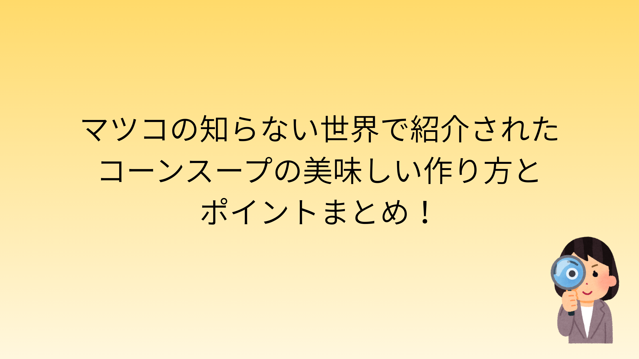 今回はマツコの知らない世界で放送されたコーンスープ特集から、コーンスープを美味しく作るポイントと作り方についてまとめてみました。