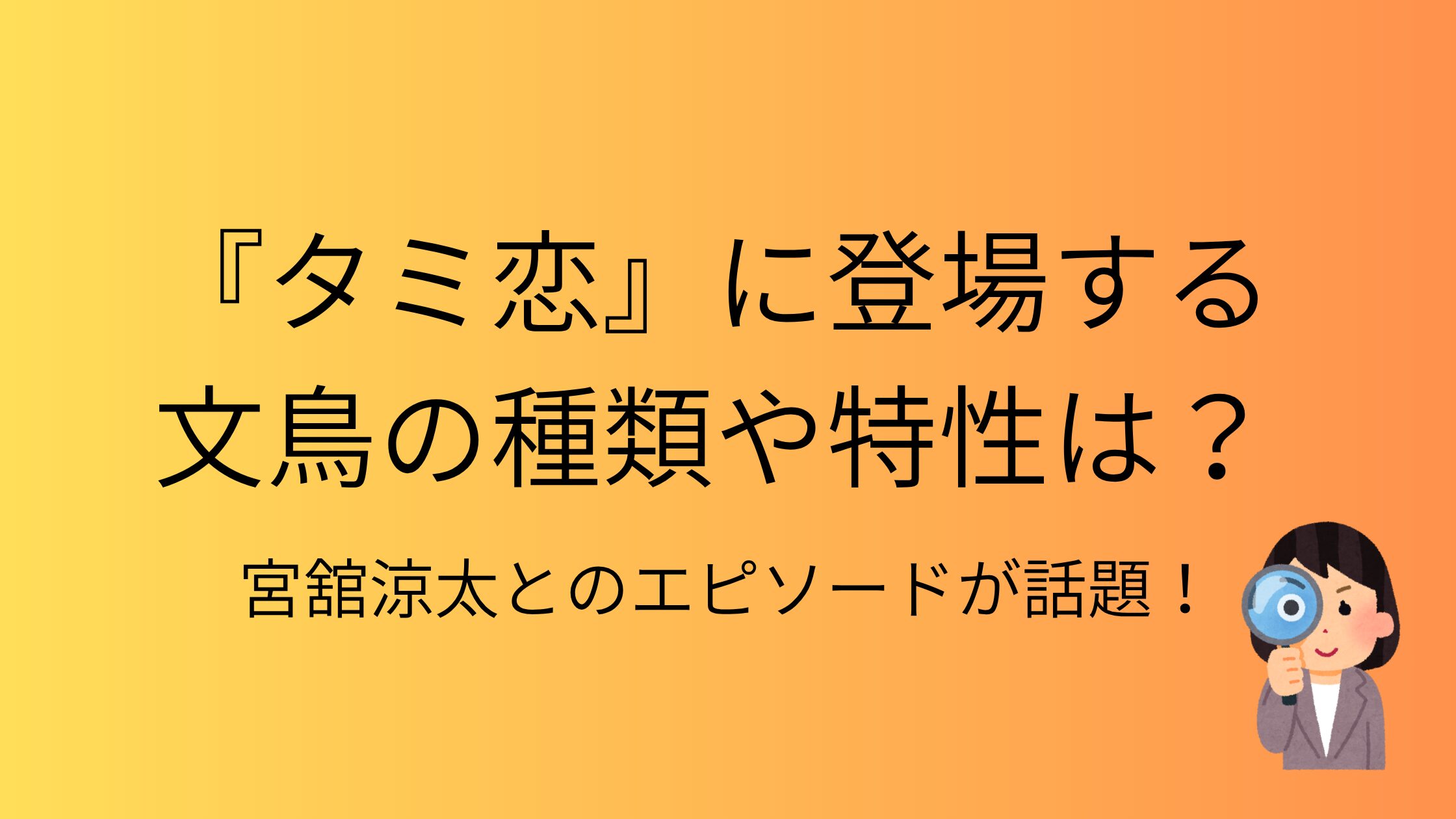 今回は『ターミネーターと恋しちゃったら』に登場する文鳥の種類や特性、宮舘涼太さんと文鳥の仲良しエピソードについて調査しました。